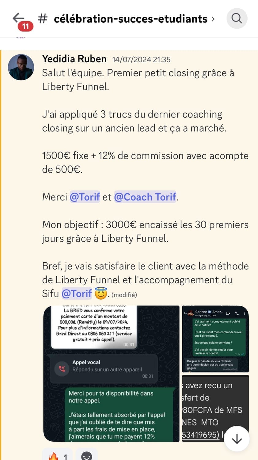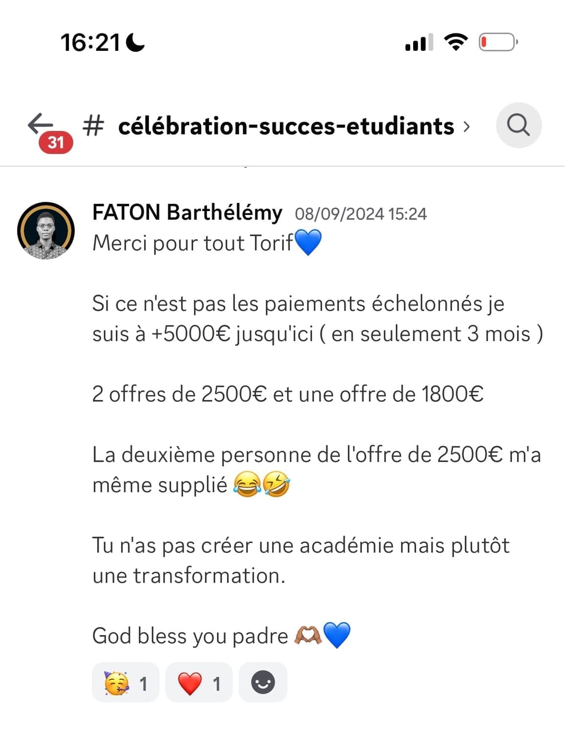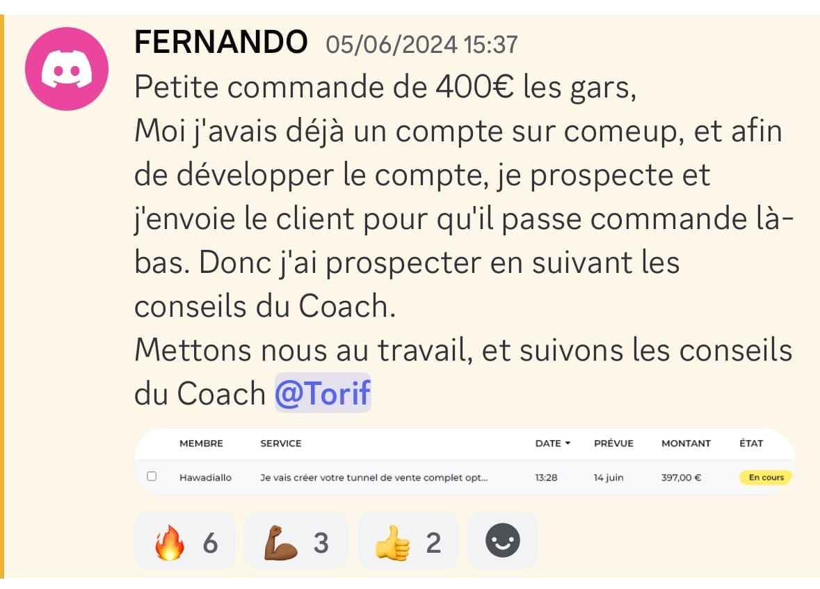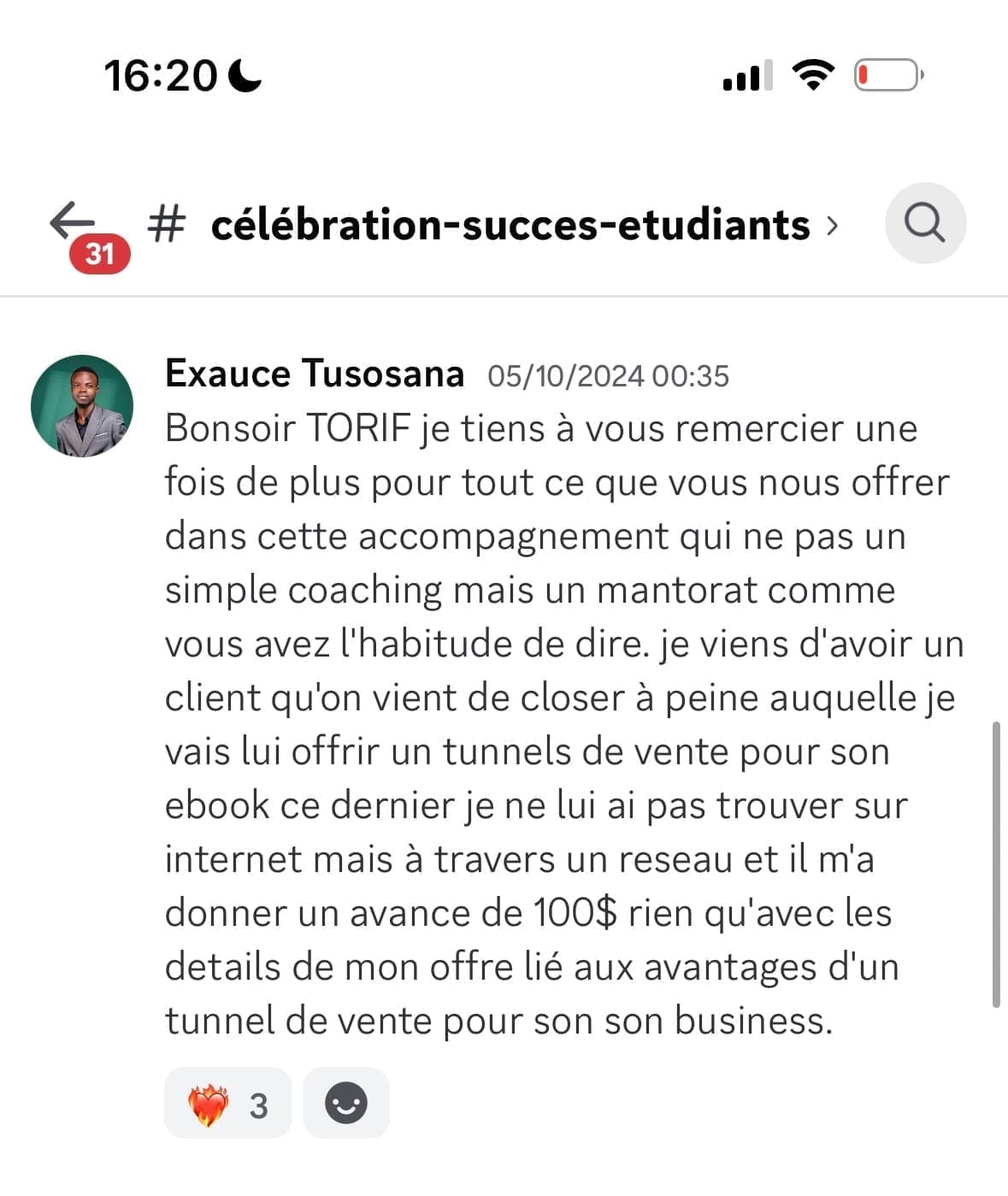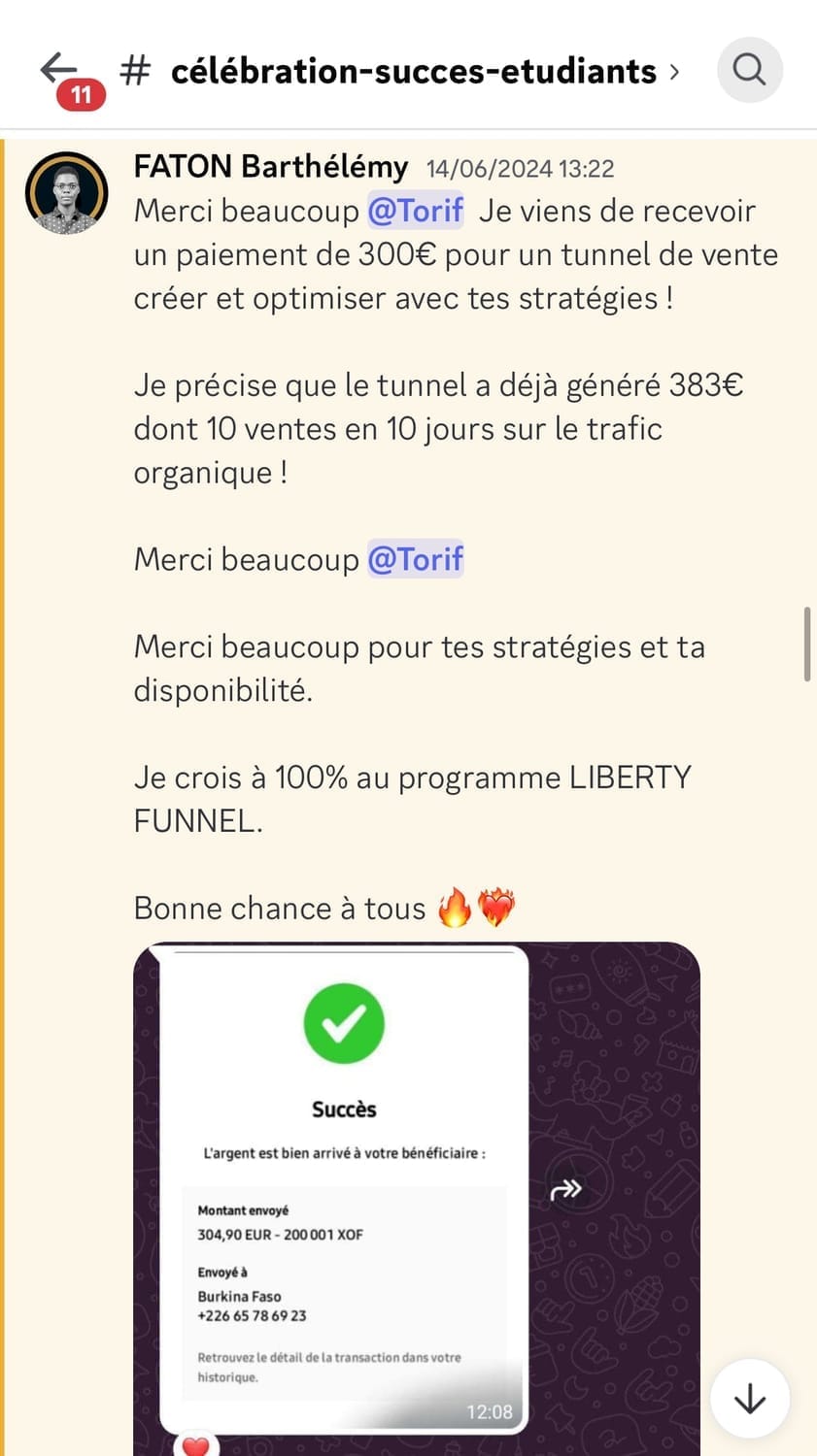 Je suis Torif , j'ai eu en 2022 le trophée de Meilleur Entrepreneur Digital Afrique et a généré +1 500 000€ sur internet , j'ai travaillé aussi avec des noms connus comme l'ex préparateur physique de KARIM BENZEMA , l'agence de musique THE ARTIST ACADEMY et je suis le seul africain noir à passer sur le podcast français anglais de la plateforme numéro 1 de création de tunnel de vente , systeme io .